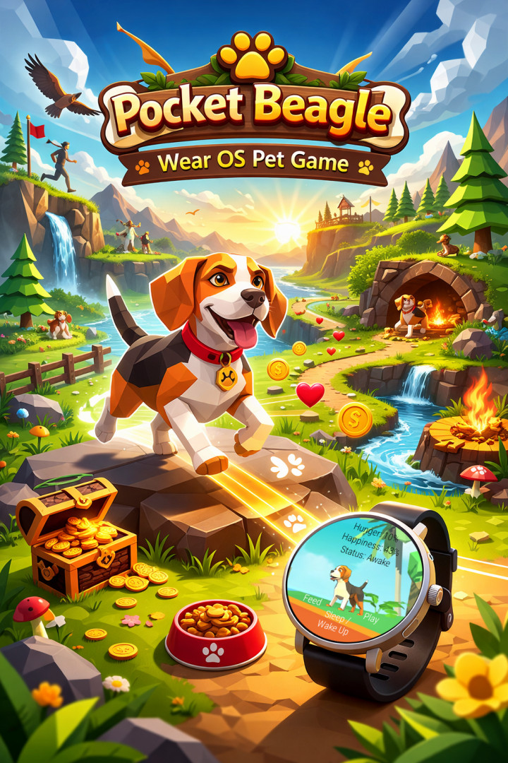 The ultimate virtual pet for your WearOS watch. Feed, play, and keep your beagle happy, right on your wrist.