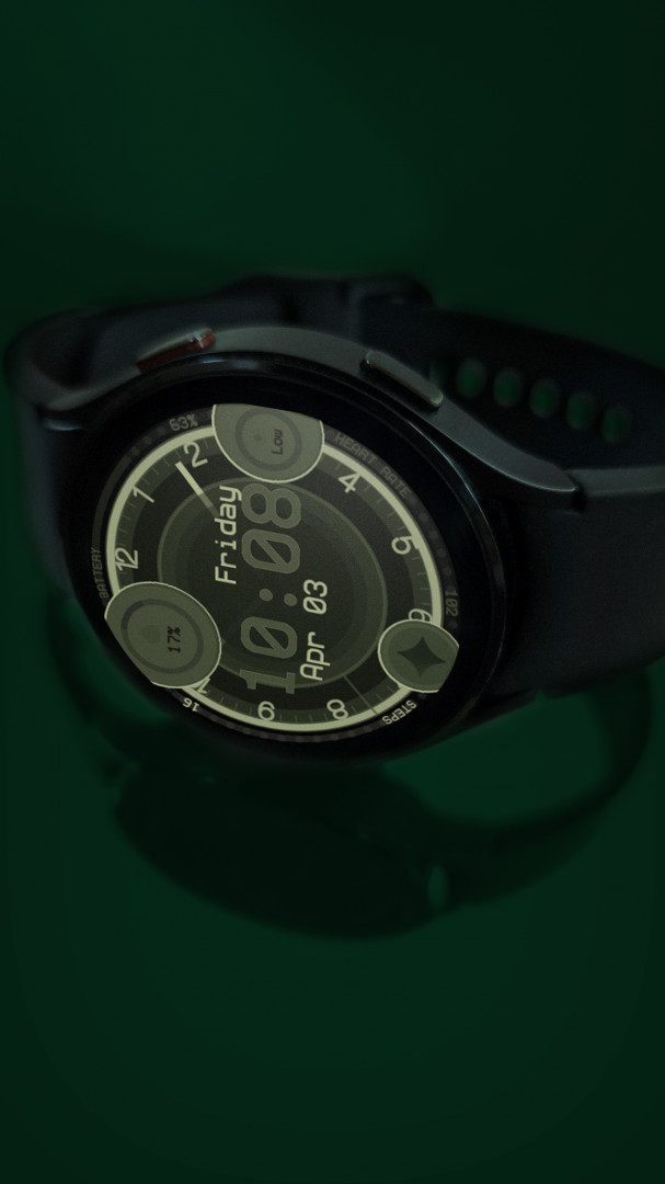 Switch between dial styles, explore different color combinations, and choose from 9 unique backgrounds to create a watch face that fits your mood, outfit, or lifestyle.