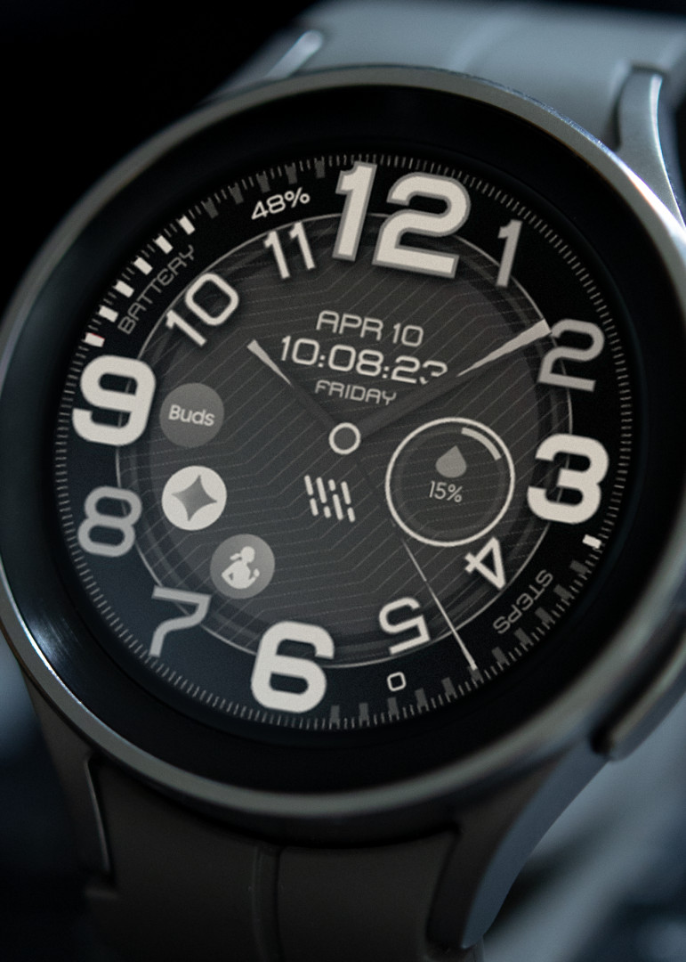 Inspired by contour lines and natural flow, this design blends minimal analog elegance with functional digital data, creating a watch face that feels both calm and powerful.